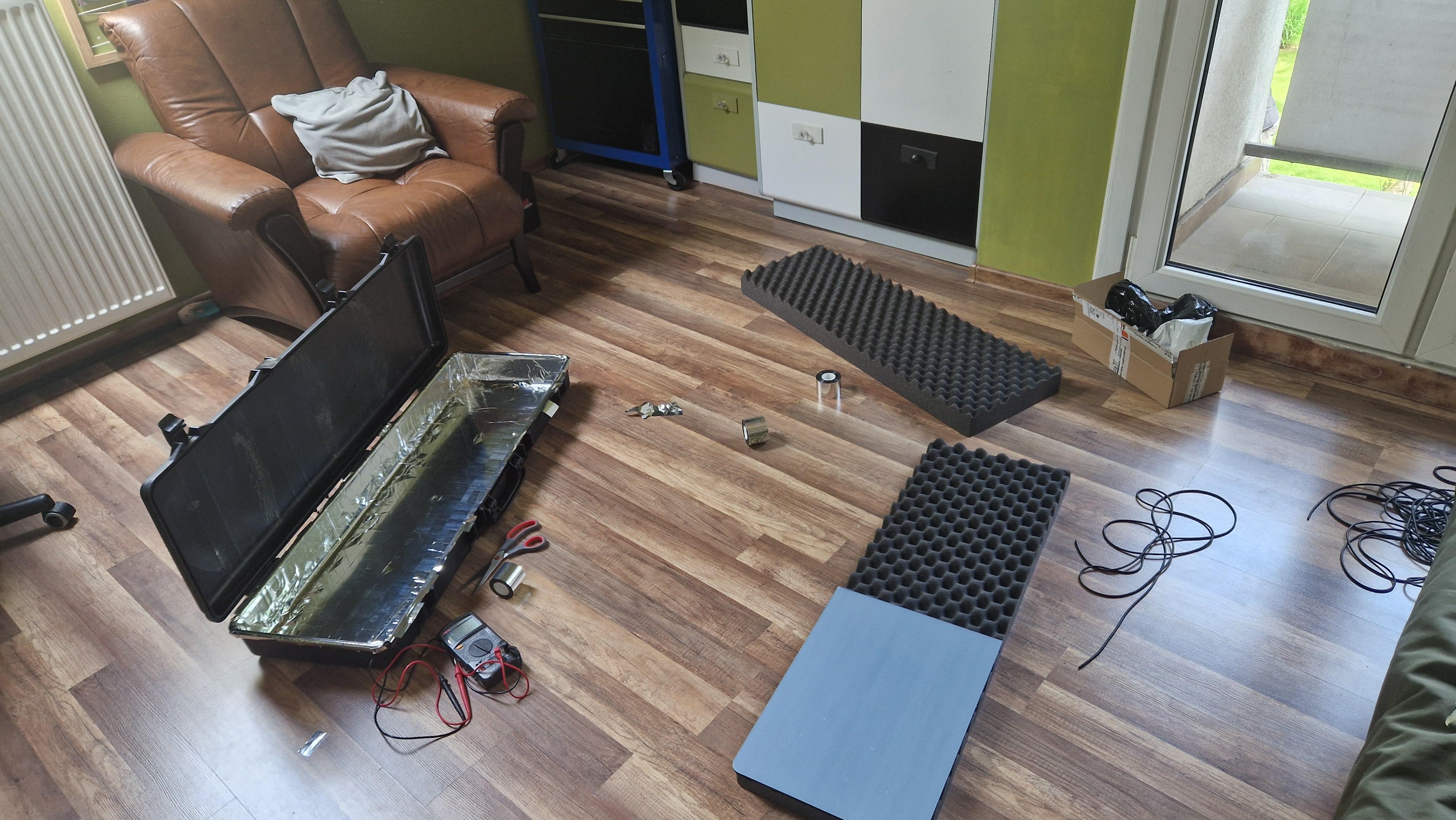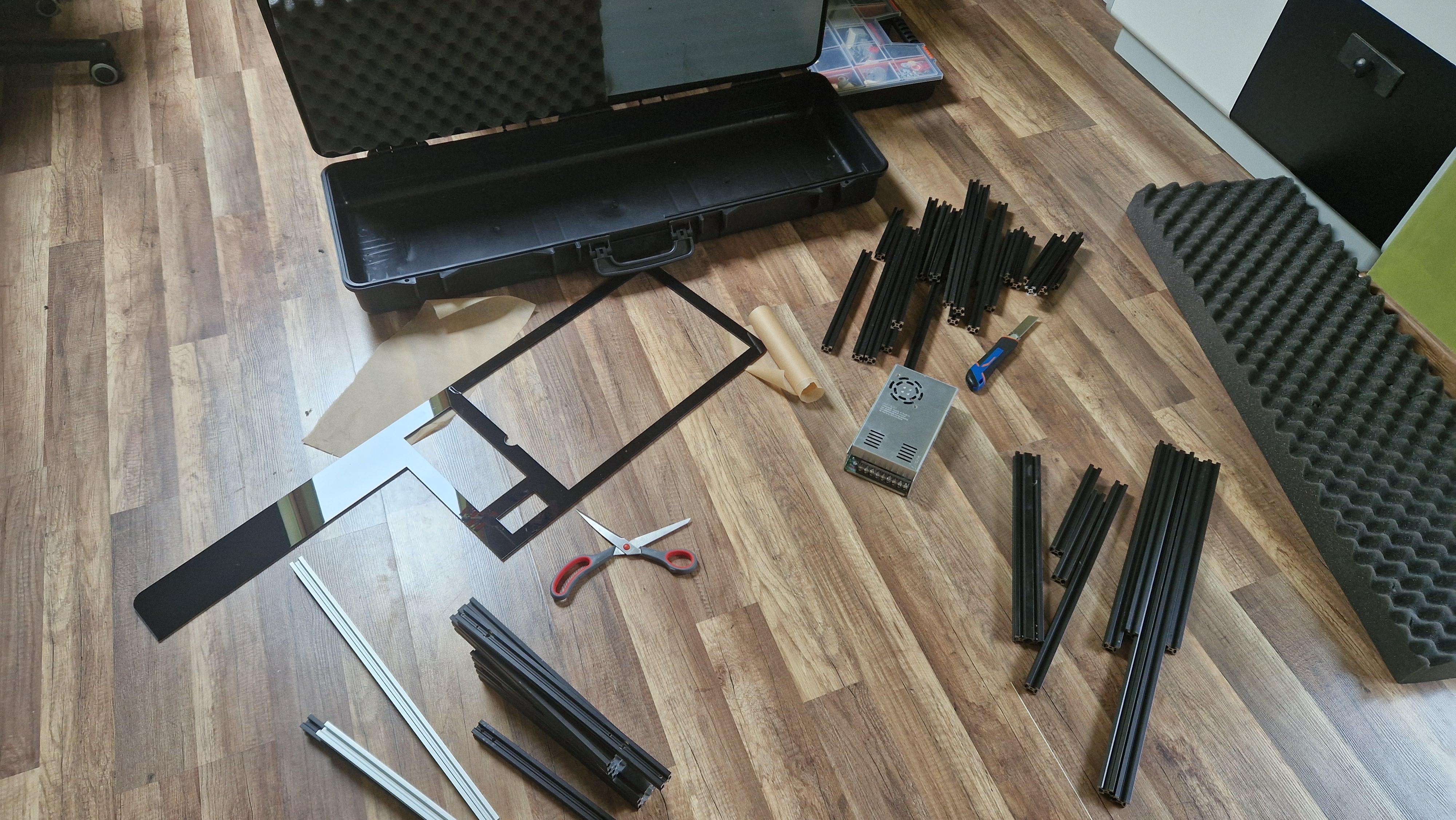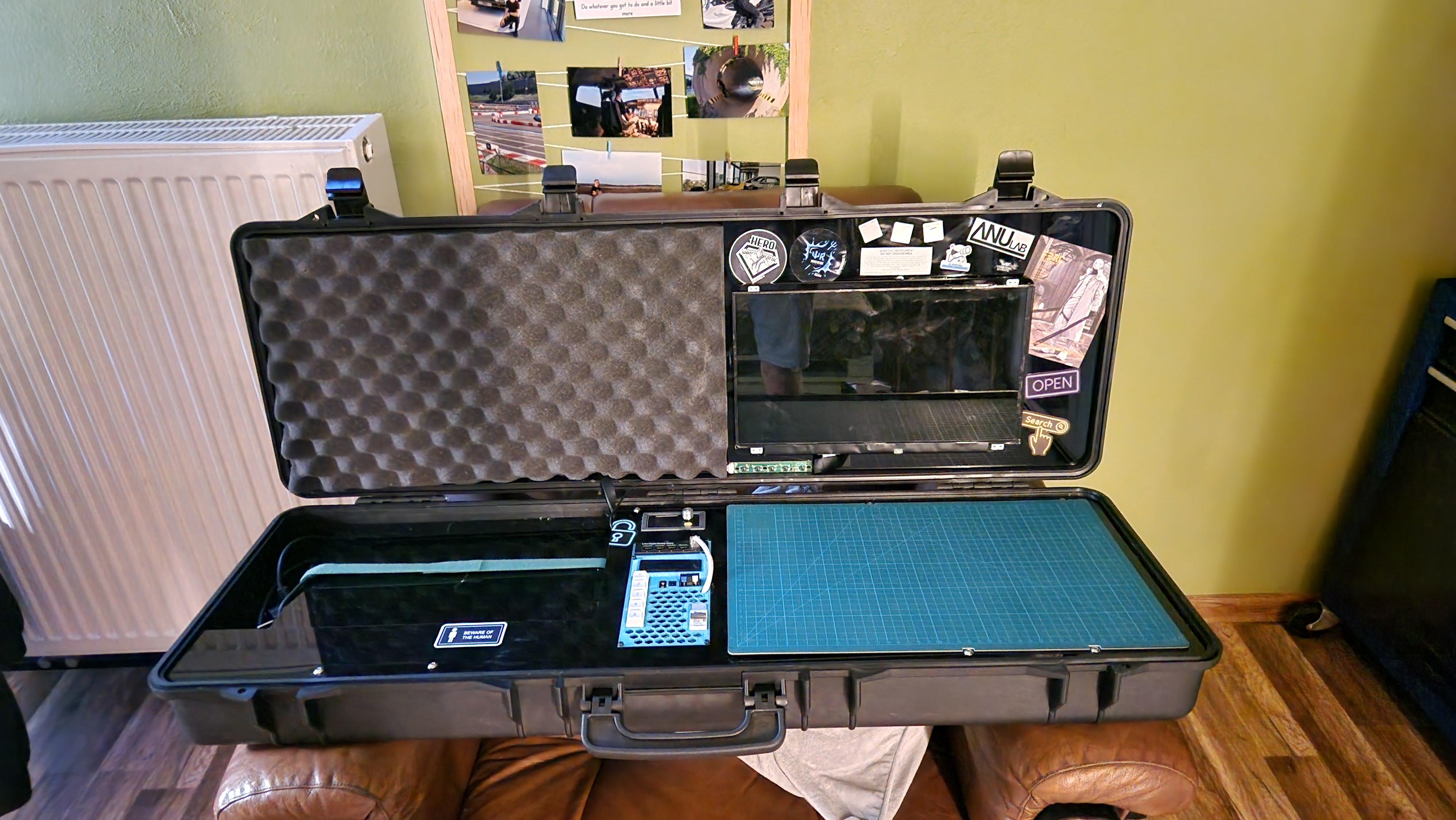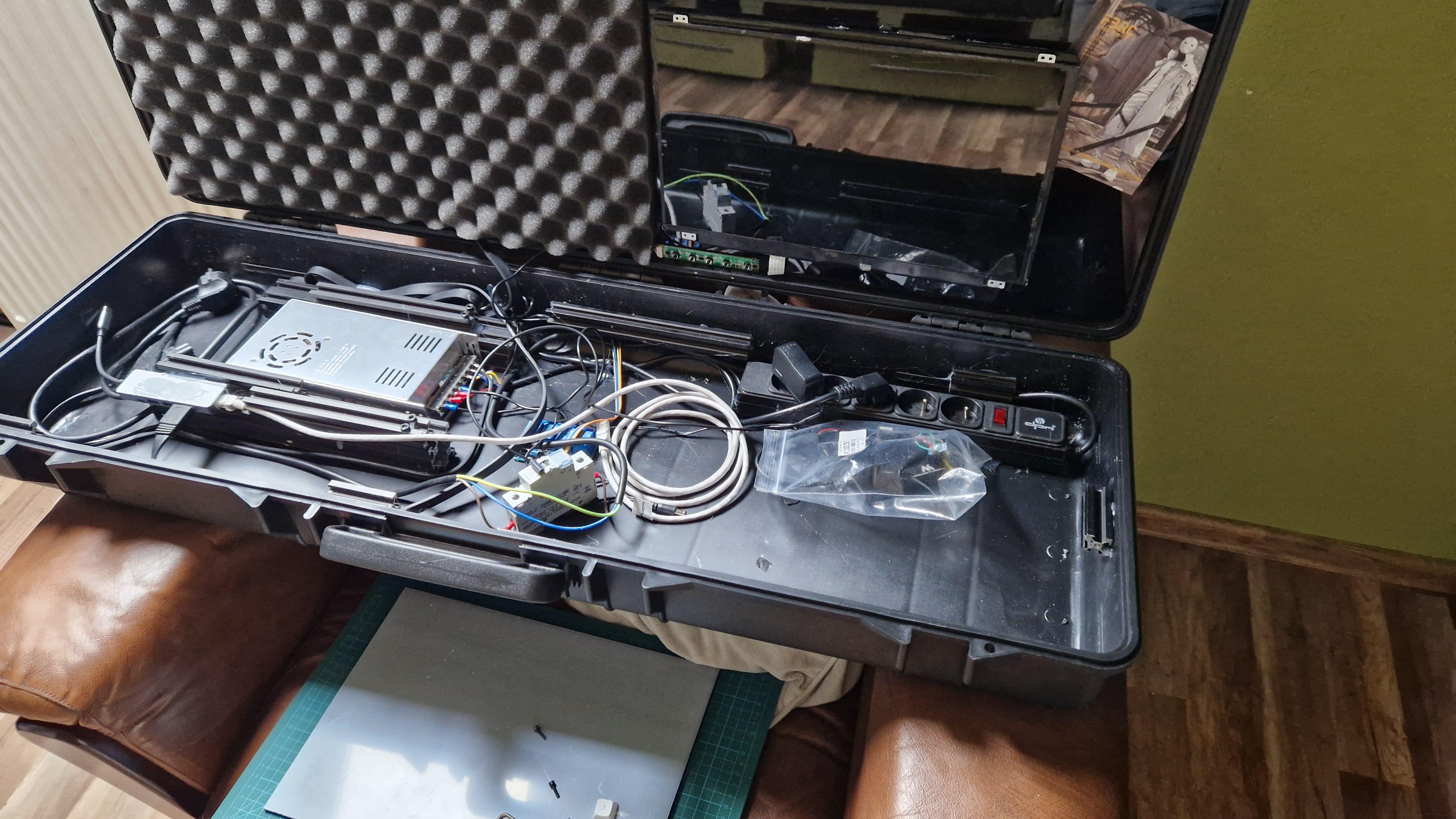 Every creation process starts with two things. Searching for inspiration and a lot of money spent. To be transparent, I just call It a Pelican Case, It’s not a Peli case. Those are too expensive, what I’m using is some noname suitcase for a gun. After my 5mm acrylic arrived I started cutting V-slots to hold everything together inside the suitcase. And I have to say. Tapping 10 holes was a PAIN. It took me like 3 hours and my hands were completely destroyed.